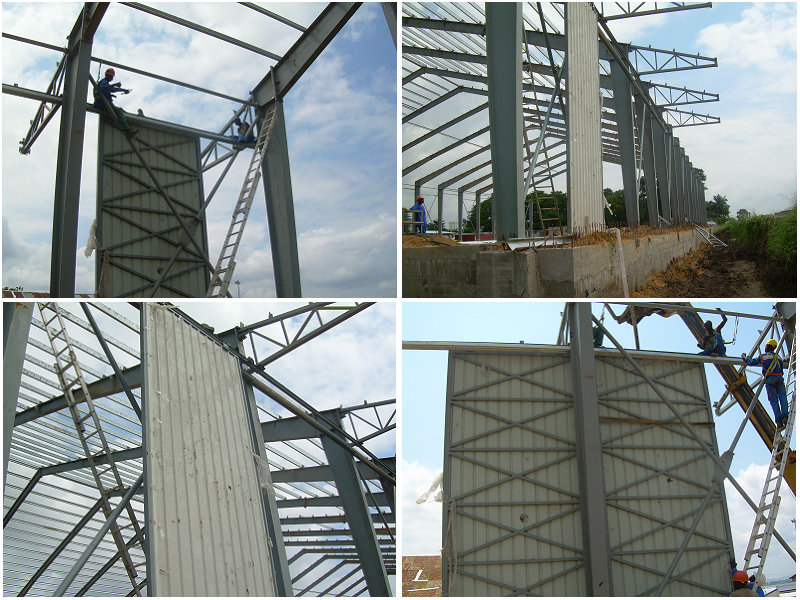 剛果倉庫位于非洲,占地面積3500平方米。主體框架用H型變截鋼制作完成。所有鋼架結(jié)構(gòu)均由螺栓連接;A(chǔ)離地面1米以作為防水臺(tái)。以下為部分建筑圖片展示: