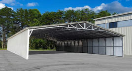 2.1框排架結(jié)構(gòu)體系 此種結(jié)構(gòu)體系倉庫橫向為剛接框架結(jié)構(gòu),縱向為排架結(jié)構(gòu),縱向設(shè)置柱間支撐抵抗水平荷載。這種結(jié)構(gòu)形式的倉庫橫向較短,縱向較長,并采用設(shè)置結(jié)構(gòu)縫的方式,增大倉庫的縱向長度, 但柱間支撐可能會對工藝的布置造成影響。